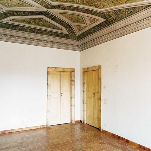 Si è proceduto quindi al consolidamento dei settori che presentavano cedimenti strutturali, con tecnologie specifiche e soprattutto invisibili. Le volte che caratterizzano gli spazi interni, i cui decori pittorici manifestavano macchie dovute ad umidità e lesioni diffuse, sono state tutte restaurate. Si è inoltre proceduto allo smaltimento di parte del sistema di copertura, che ha consentito la sostituzione di elementi lignei profondamente deteriorati e non recuperabili il recupero di quelli ancora idonei ed consolidamento della muratura di supporto, le le pavimentazioni in cotto del piano secondo e dei pianerottoli della scala sono stati conservati e restaurati.