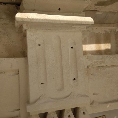 Vista la peculiarità del materiale e del pregio scultoreo degli stessi, si e’ provveduto ad un totale recupero degli stessi con anche la ricostruzione dei pezzi mancanti a seguito del distacco.